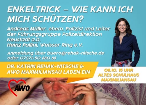 Diese und weitere Fragen können bei einer Informationsveranstaltung geklärt werden, zu der die Landtagsabgeordnete Dr. Katrin Rehak-Nitsche und die AWO-Maximiliansau gemeinsam herzlich einladen. Als Experten stehen folgende Gäste zur Verfügung: